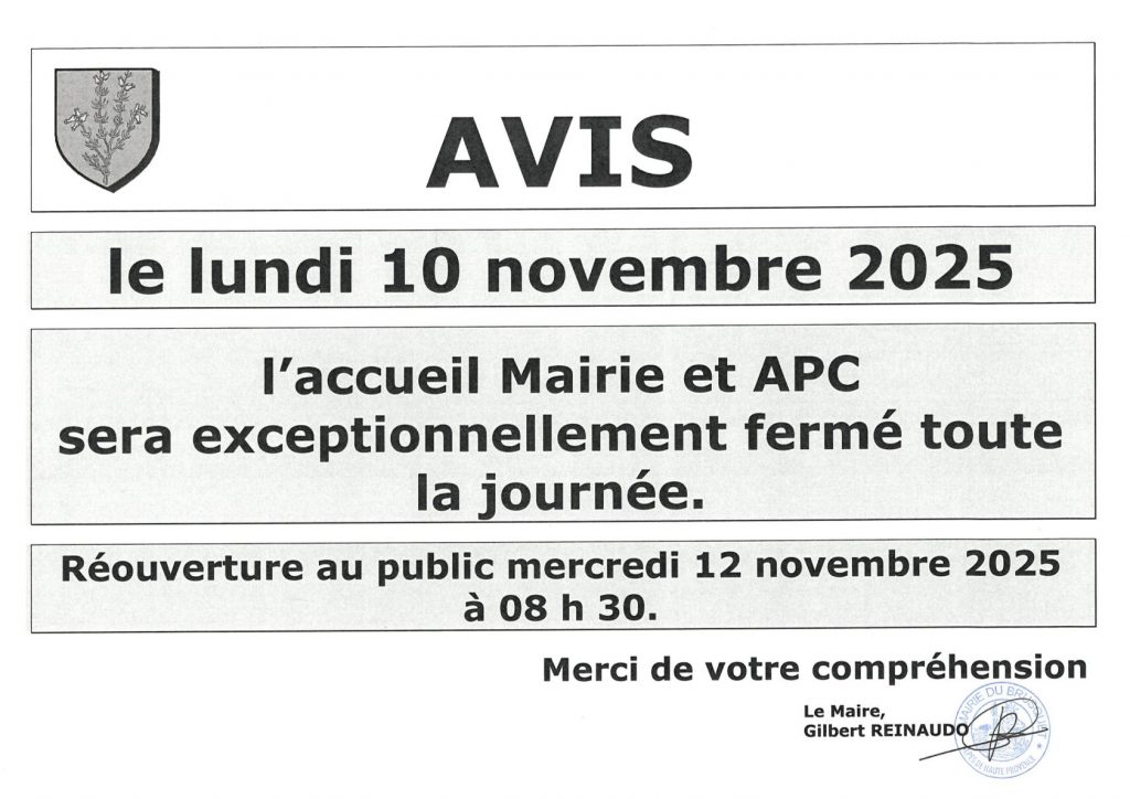 ⚠️ FERMETURE ACCUEIL MAIRIE-APC ⚠️
