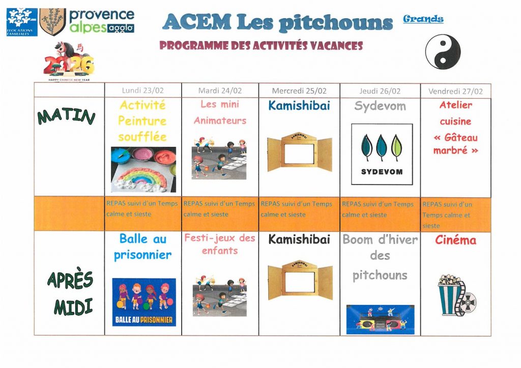 ❄️ PROGRAMME VACANCES HIVER ACM DU 16 FÉVRIER AU 27 FÉVRIER 2026 ❄️ 3 février 2026 dans Actualité Share on FacebookShare on Twitter