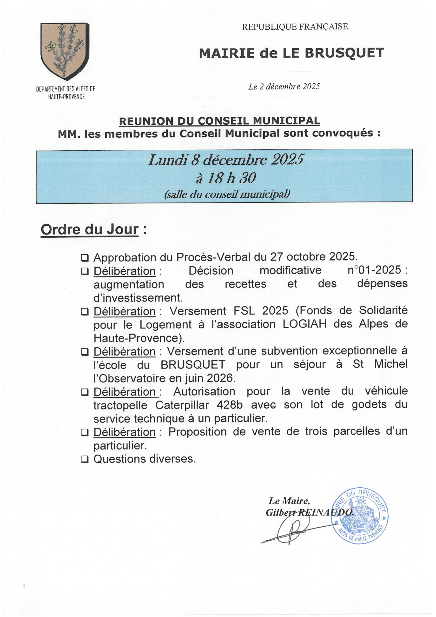📄 PROCHAINE RÉUNION DU CONSEIL MUNICIPAL DU 08 DÉCEMBRE 2025 📄 3 décembre 2025 dans Actualité