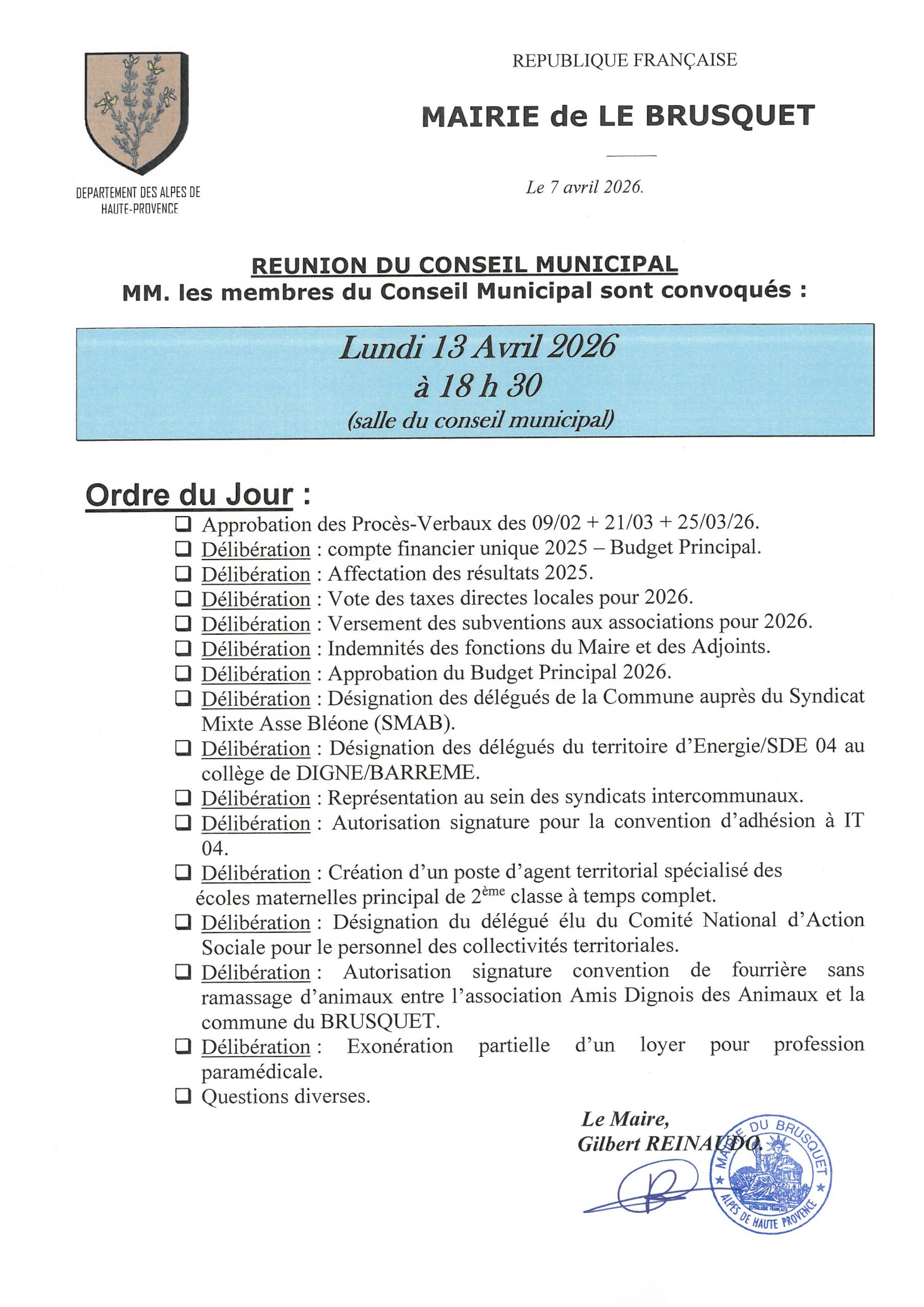 đ PROCHAINE RĂUNION DU CONSEIL MUNICIPAL DU 13 AVRIL 2026 đ